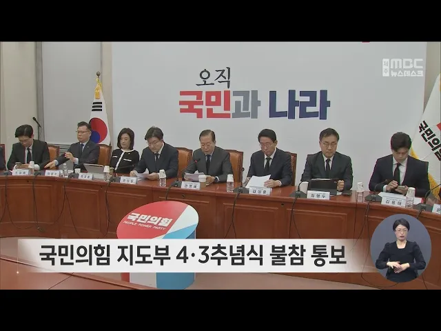 국민의힘 지도부가 지난해에 이어 올해도 4.3추념식에 참석하지 않을 것으로 보입니다. 제주도는 내일(3일) 열리는 제77주년 4.3추념식에 당초 권영세 국민의힘 비상대책위원장과 권성동 원내대표, 이양수 사무총장이 참석하기로 했지만, 모두 불참을 통보했다고 밝혔습니다. 이들은 모레(4일) 윤석열 대통령의 탄핵 선고가...