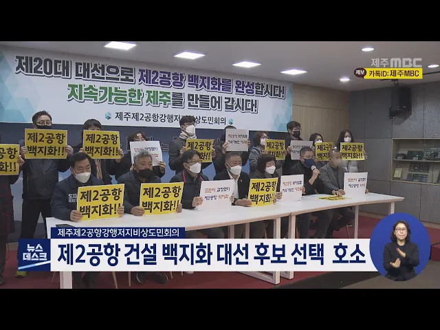 제주 제2공항강행저지비상도민회의는 제주도의회에서 기자회견을 열고, 제20대 대선 투표로 제주 제2공항 백지화를 완성하자며, 사전투표 참여를 독려했습니다. 또, 과잉 관광의 악순환 고리를 끊고 지속가능한 제주의 미래를 열기 위한 결단에 나서야 한다며, 제2공항 백지화로 갈등을 종식하고 공동체를 회복할 수 있는 ...