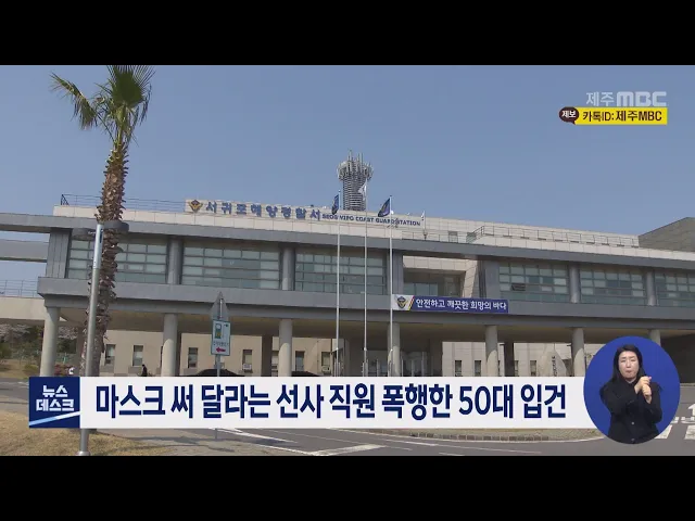 서귀포해양경찰서는 마라도 여객선에서 마스크를 착용하라는 직원들을 폭행한 50대 A씨를 업무 방해와 폭행 혐의로 입건해 조사하고 있습니다. 해경에 따르면 A씨는 어제(2/27) 오후 2시 반쯤 서귀포시 대정읍 마라도에서 출발해 모슬포로 향하는 여객선에서 마스크를 쓰라는 선사 직원에게 검찰을 사칭하며 거부하다 몸 ...