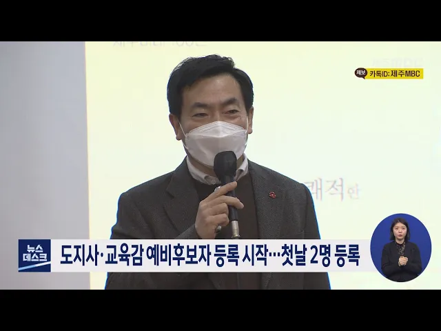 오는 6월 1일 실시되는 제8회 전국동시지방선거 관련해 도지사와 교육감 예비후보자 등록이 오늘부터 시작됐습니다. 후보등록 첫 날인 오늘은 박찬식 시민정치연대 제주가치 공동대표가 도지사 예비후보에, 김광수 전 교육의원이 교육감 예비후보로 등록했습니다. 예비후보자로 등록하면 현판과 현수막 등을 내건 선거사무...