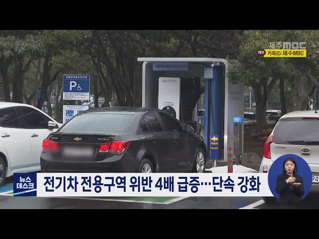 전기차 주차 위반과 충전 방해 행위 등의 전기차 전용구역 위반행위가 크게 늘어난 것으로 나타났습니다. 제주도에 따르면 지난해 제주지역 전기차 전용구역 위반 행위 적발 건수는 천500여 건으로 전년보다 4배 급증했습니다. 제주도는 지난달 28일부터 개정된 관련법이 시행됨에 따라 모든 공용충전기와 전용 주차구역 등...