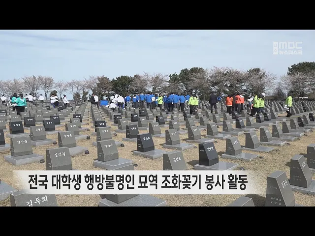 전국 대학생들이 제주 4.3 평화공원을 찾아 희생자의 명복을 기원했습니다. 제주지역 대학 총학생회와 전국 국공립대학생연합회는 제77주년 4.3희생자 추념일을 앞두고 전국 23개 대학이 참여해 오늘 오전 제주4.3평화공원 행방불명인 묘역에서 조화꽂기 활동을 하고 희생자들의 명복을 빌었다고 밝혔습니다. 이들은 내...