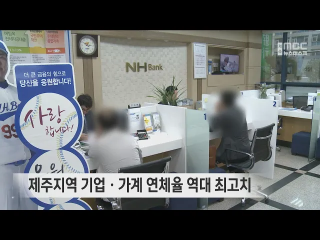 제주지역 기업과 가계 연체율이 역대 최고치를 기록했습니다. 한국은행 제주본부에 따르면 지난 1월 말 기준 제주지역 예금 은행의 원화대출 연체율은 1.14%로 전국 평균치보다 두배 웃돌며 역대 최고치를 보였습니다. 기업대출 연체율은 0.18%포인트 오른 1.18%, 가계대출 연체율의 경우 기업대출 보다 높은 1.19%를 기...
