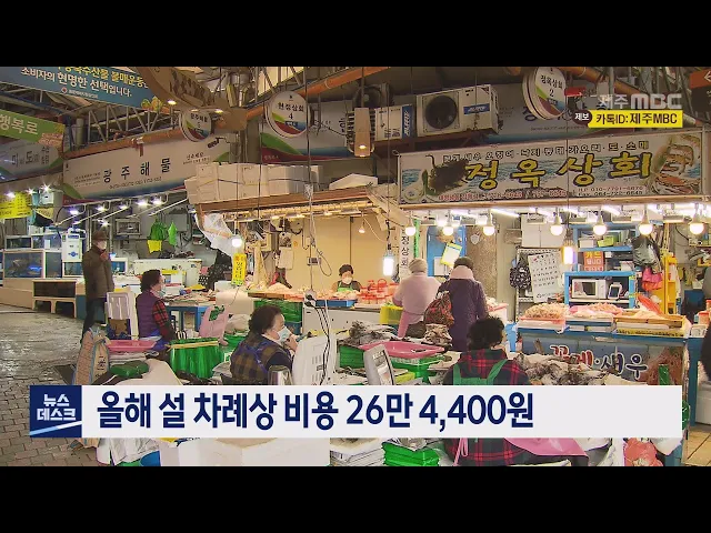 올해 설 차례상 비용이 작년과 비슷한 26만여 원으로 전망됐습니다. 한국농수산식품유통공사가 제주를 비롯한 전국 19개 지역의 전통시장의 제수용품 28개 품목 가격을 조사한 결과, 설 차례상 차림비용은 26만 4천400원으로 지난해보다 0.4% 소폭 올랐습니다. 품목별로는 지난해 큰 풍년을 맞은 쌀과 사과, 배 등 과일 값...