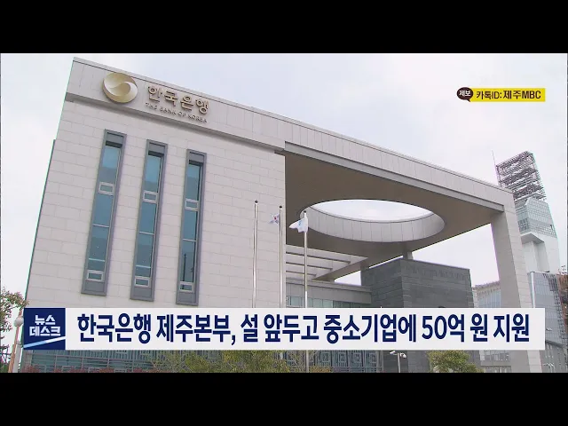 한국은행 제주본부는 설을 앞두고 오는 17일부터 28일까지 제주도내 중소기업에 50억 원 규모의 특별자금을 지원합니다. 지원 한도는 업체당 4억 원이며 금융기관에서 대출할 때 대출금액의 일부를 0.25%의 낮은 금리로 지원하게 됩니다. 다만, 변호사업, 병원 등 고소득 업종을 비롯해 부동산업과 사치향락업종 등은 제외...