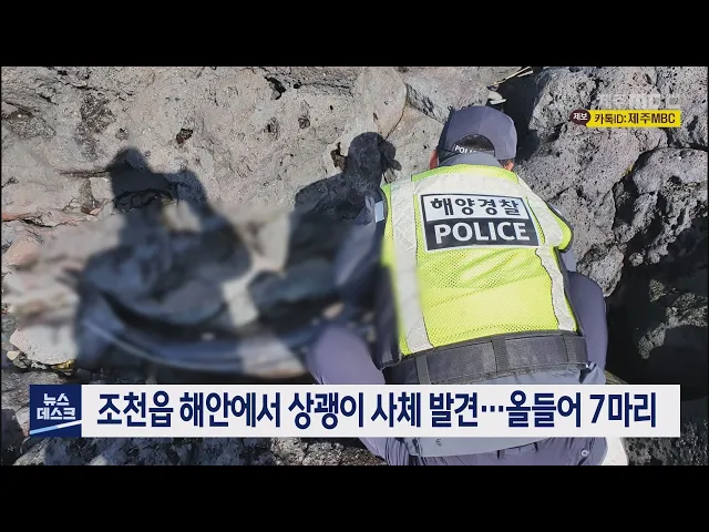 어제 낮 12시 10분쯤 제주시 조천읍 신촌리 해안가에 해양보호생물종인 상괭이 사체가 발견됐다는 신고가 해경에 접수됐습니다. 발견된 상괭이 사체는 길이 160센티미터 정도로, 해경은 불법포획 흔적이 발견되지 않아 지자체에 인계했습니다. 한편, 올들어 제주해경에서 발견한 상괭이는 모두 7마리입니다.