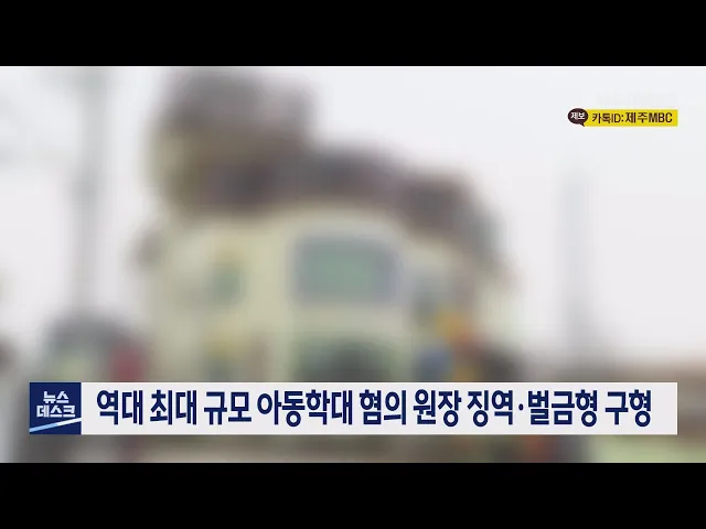 검찰이 제주에서 발생한 역대 최대 규모의 아동학대 사건의 해당 어린이집 원장에게 징역 6월에 벌금 5천만 원을 구형했습니다. 제주지방법원 형사3단독 심리로 열린 결심공판에서 제주지방검찰청은 지난 2천20년 말부터 3개월 동안 무려 351차례의 아동학대가 발생하는 동안 주의 의무를 다하지 않은 혐의 등으로 기소된 6...