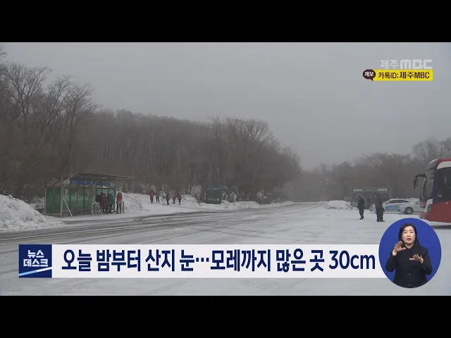 제주 산지에 대설예비특보가 내려진 가운데 오늘 밤부터 눈이 내리기 시작하겠습니다. 눈은 모레까지 산에는 많은 곳은 30cm 이상이 쌓이겠고, 중산간에는 3에서 8cm, 해안에는 1에서 5cm의 눈이 쌓이겠습니다. 내일 아침 최저기온은 3도에서 4도까지 떨어지고 바람도 강하게 불어 체감 기온은 영하로 떨어지겠습니다.