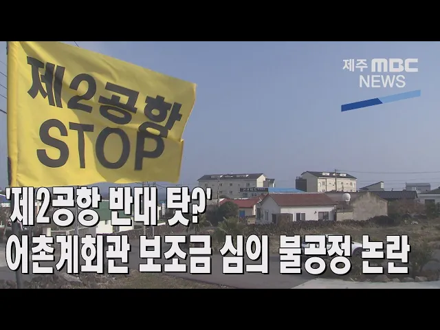 ◀ANC▶ 서귀포시 성산읍의 한 마을에서어촌계 다목적회관 건립을 위한 보조금 심의 결과를 놓고 논란이 일고 있습니다. 마을 주민들은 인근 하천 정비공사로 황폐화된 마을을 지원하기 위한 회관 건립사업이 엉뚱하게도 제2공항 연계사업으로 분류돼5년째 보조금심의위원회에서 선정되지 못하고 있다며반발하고 있습니다....