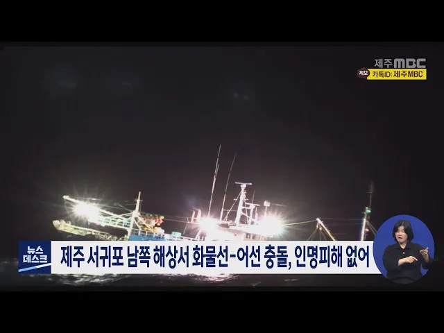제주 서귀포 남쪽 해상서 화물선-어선 충돌, 인명