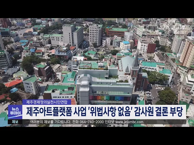 제주경제정의실천시민연합은성명을 내고,제주아트플랫폼 조성사업에 대해감사원이 위법 사항 없음으로 결론 낸 것과 관련해강하게 규탄했습니다. 제주경제정의실천시민연합은 건물의 상업적 가치를 상실해 철거하겠다는재밋섬 건물을 100억 원에 매입하고또 100억 원을 들여 리모델링하겠다는 계획은도민들이 납득하기 어...