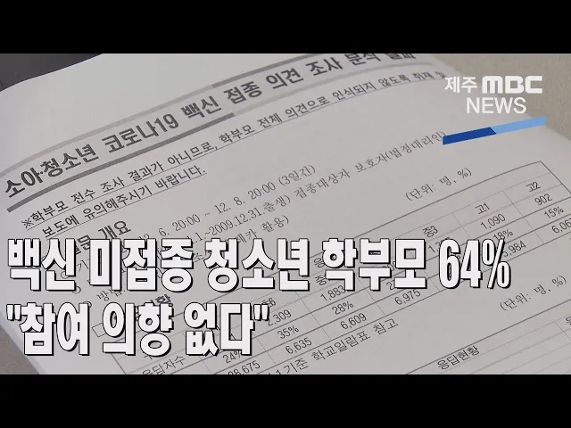 ◀ANC▶최근 소아청소년들의 코로나19 감염 확산 속에백신 접종을 놓고 논란이 가열되고 있는데요, 제주에서도 소아청소년의 백신 접종률이 저조하고,동참 의향도 낮은 것으로 나타났습니다.박주연 기자입니다. ◀END▶ ◀VCR▶정부가 내년 2월부터 도입하겠다는 청소년 방역패스.만 12살부터 17살까지학원이나 독서실, ...