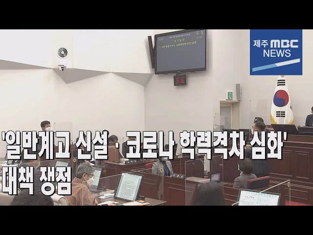 ◀ANC▶30여 년 만에 제주시 동지역에일반계 고등학교를 신설하는 방안을 놓고최근 논란이 일고 있는데요,도의회 교육행정질문에서교육당국의 소통 부재로 논란이 커졌다는 지적과코로나19로 심화된 학력격차 해소 문제가쟁점이 됐습니다. 박주연 기자입니다. ◀END▶ ◀VCR▶제주시 노형동 제주고등학교 부지에 일반계...