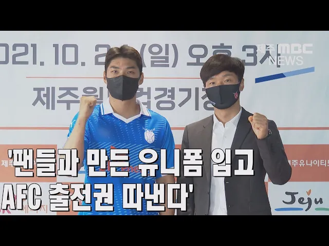 ◀ANC▶ 2부 리그로 강등됐다 올해 1부 리그에 복귀한프로축구 제주 유나이티드가 오는 24일,K리그 파이널 행과 아시아챔피언스리그 출전을 결정지을 중요한 경기를 앞두고 있는데요, 제주월드컵경기장에서 열리는 이번 홈 경기에서 선수들이 입고 뛸플라스틱 재생 유니폼도 공개했습니다. 박주연 기자입니다. ◀END▶ ◀...