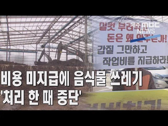 ◀ANC▶ 제주시 봉개동 음식물처리시설의 보강공사가 늦어지면서 반입되는 쓰레기를 제때 처리하지 못해 수백 톤이 쌓이고 있다는 소식, 지난 주, 전해드렸는데요. 이번에는 위탁처리업체에 대한 제주시의 비용 지급이 지연되면서 해당업체가 음식물 쓰레기 처리를 중단하는 일까지 벌어졌습니다. 박주연 기자가 보도합니...