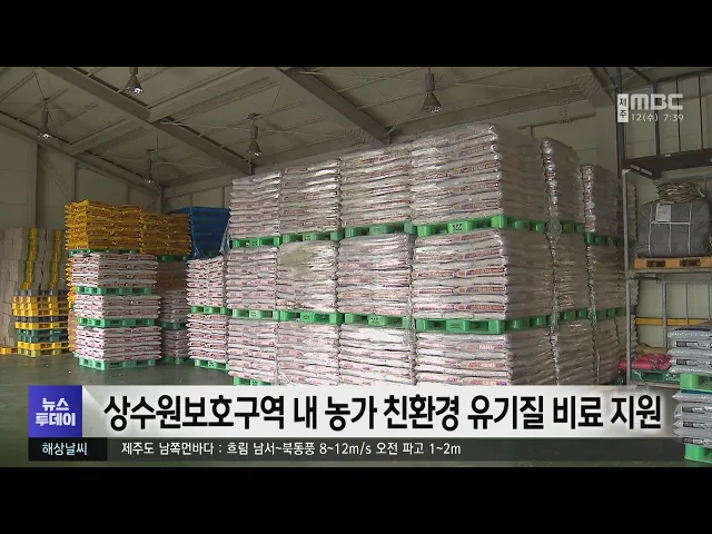 상수원보호구역 안에서 농작물 재배를 희망하는 농가에게 친환경 유기질 비료가 지원됩니다. 제주도상하수도본부는 상수원보호구역 내 행위 규제로 불편을 겪는 농가들을 위해 친환경 유기질 비료 5개 종류를 보급할 계획입니다. 보급 대상은 지난달 신청을 한 59개 농가로 재배 면적은 19만 6천㎡입니다.