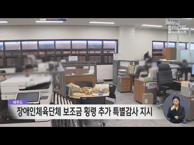 제주MBC가 보도한 장애인체육단체의 보조금 횡령 의혹 사건에 대해 제주도가 추가 특별 감사를 지시했습니다. 제주도장애인체육회는 최근 제주도의 특별감사 지시가 내려와 회계전문가와 함께 해당 종목단체의 3년치 회계자료 등을 조사할 계획이라고 밝혔습니다. 해당 종목단체는 은퇴한 선수를 현역 선수로 속여 보조금을...