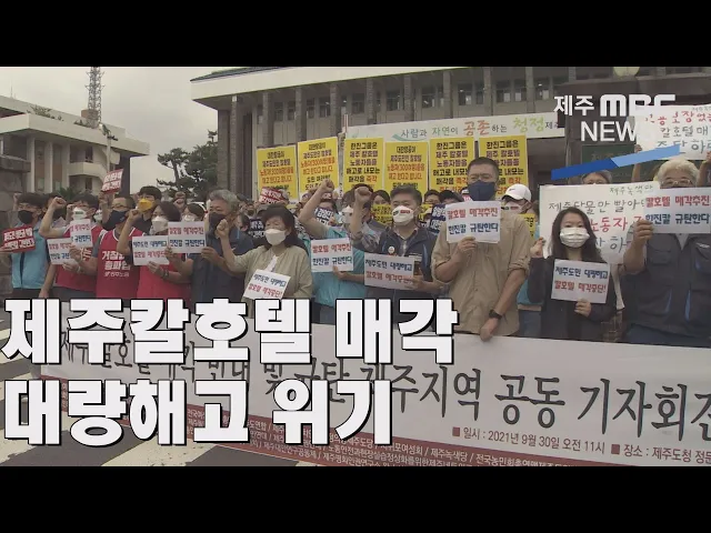 ◀ANC▶ 최근 대한항공 자회사인 칼호텔 네트워크가제주 칼호텔 부지와 건물을 매각하기 위해부동산 자산운용사와 업무협약을 체결했는데요, 호텔 직원과 제주지역 시민사회단체들이직원 380여 명에 대한 고용 보장없이 매각이 추진되고 있다며 규탄하고 나섰습니다. 박주연 기자입니다. ◀END▶ ◀VCR▶ 제주 칼호텔 ...