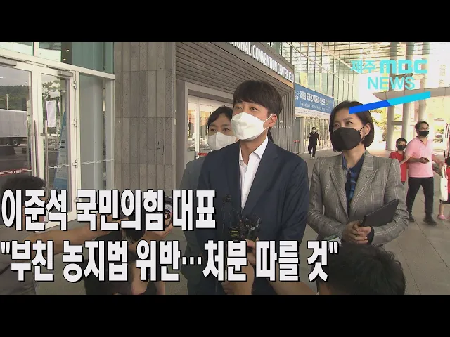 ◀ANC▶최근 이준석 국민의힘 당 대표 부친이제주의 농지를 소유하고도 농사를 짓지 않아농지법 위반 논란이 일고 있는데요,이준석 대표가부친 땅 농지법 위반에 대해 행정의 처분에 따르고, 4.3희생자 배보상과 관련해서는 도민의 의견을 듣겠다고 밝혔습니다.박주연 기자가 보도합니다. ◀END▶ ◀VCR▶이준석 국민의...
