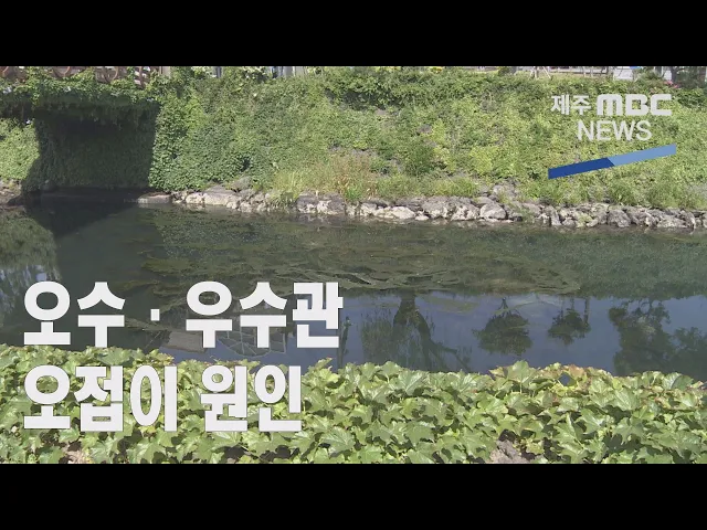◀ANC▶ 해마다 봄, 가을이면 제주시 산지천이 심한 녹조로 몸살을 앓고 있다는 보도,전해드렸었는데요, 제주시가 원인을 조사해보니일대 동문시장과 주택의 오수관과 우수관이 잘못 연결돼오수가 산지천에 유입된 것으로 드러났습니다. 박주연 기자입니다. ◀END▶ ◀VCR▶ 온통 초록빛으로 변한 산지천. 물 속은 녹조...