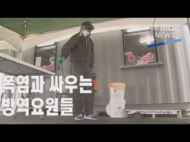 ◀ANC▶ 오늘은 절기상 일년 중 가장 덥다는 '대서'입니다. 코로나19 방역에 투입된 요원들은찜통더위와 싸우며 폭증한 선별검사 물량을 처리하느라 애를 먹고 있는데요, 박주연 기자가 현장을 취재했습니다. ◀END▶ ◀VCR▶ 뜨거운 햇볕이 내리쬐는제주공항 워크스루 선별진료소. 머리부터 발끝까지 감싸는 방호복에...