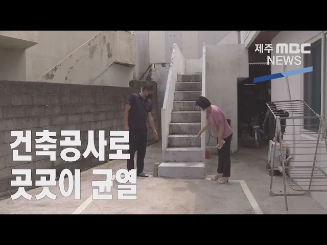 ◀ANC▶ 인근의 건축공사로내 집에 균열피해가 발생했다라는민원이 잇따르고 있습니다. 특히나 상업지역의 경우건물간 이격거리가 매우 좁다보니이같은 민원 발생이 많은데요. 보상규정도 따로 없다보니개인간 분쟁으로 이어지는 경우가 대부분입니다. 시청자 제보뉴스,박주연 기자가 보도합니다. ◀END▶ ◀VCR▶ 제주...
