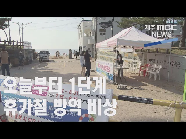 ◀ANC▶ 정부의 사회적 거리두기 조정에 따라비수도권 지역은 오늘부터 1단계가 적용되는데요, 휴가철 많은 관광객이 찾을 것으로 예상되는 제주는 백신 접종자라도 마스크 착용이의무화되는 등 강화된 조치가 시행됩니다. 현장에 나가 있는 취재기자 연결합니다.박주연 기자 전해주시죠. ◀END▶네, 제주시 이호해수욕...