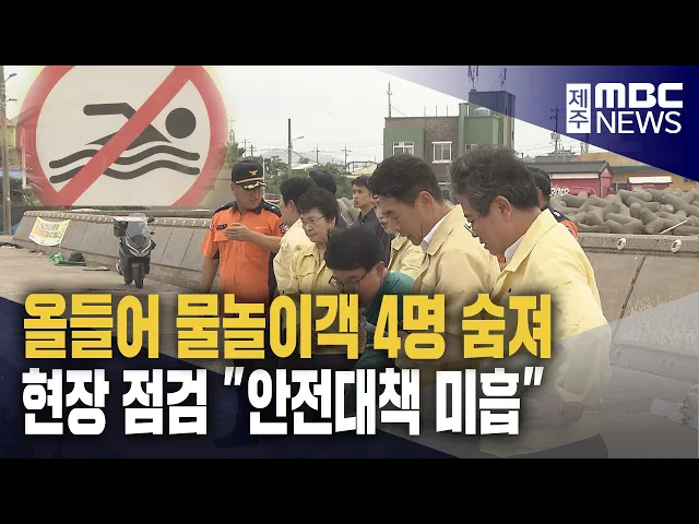 ◀ 앵 커 ▶ 무더위가 이어지는 가운데 최근 제주 지역에서 물놀이 사망사고가 잇따르고 있는데요. 안전대책에 문제가 없는지 살펴보기 위해 도의원들이 직접 현장 점검에 나섰습니다. 박주연 기자가 보도합니다. ◀ 리포트 ▶ 곽지 해수욕장 인근 바다에서 숨진 채 발견된 30대 남성. 친구들과 함께 바로 옆 금성리 갯바...