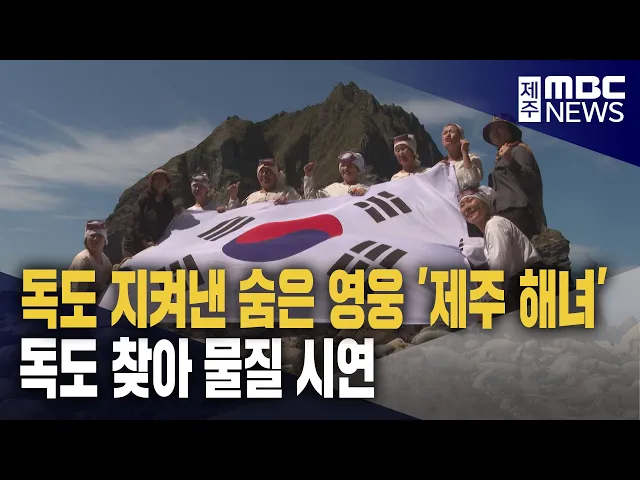 ◀ 앵 커 ▶ 제주 해녀는 일제강점기부터 해방 이후까지 우리 땅 독도에서 수십 년 간 물질을 하며 독도를 지켜냈는데요. 광복 80주년을 맞아 독도 지킴이 역할을 한 숨은 영웅인 제주 해녀의 정신을 기리기 위해 후배 해녀들이 독도를 찾았습니다. 박주연 기자입니다. ◀ 리포트 ▶ 동해를 지키며 우뚝 서 있는 독도. 에...