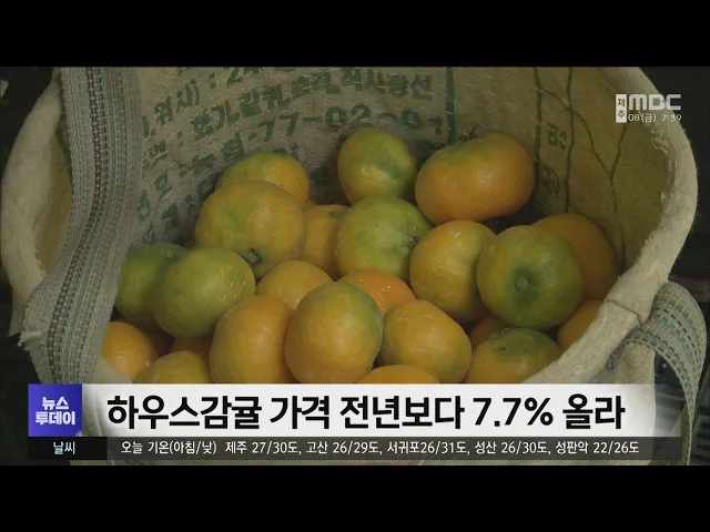 제주 하우스 감귤 가격 전년보다 7.7% ↑