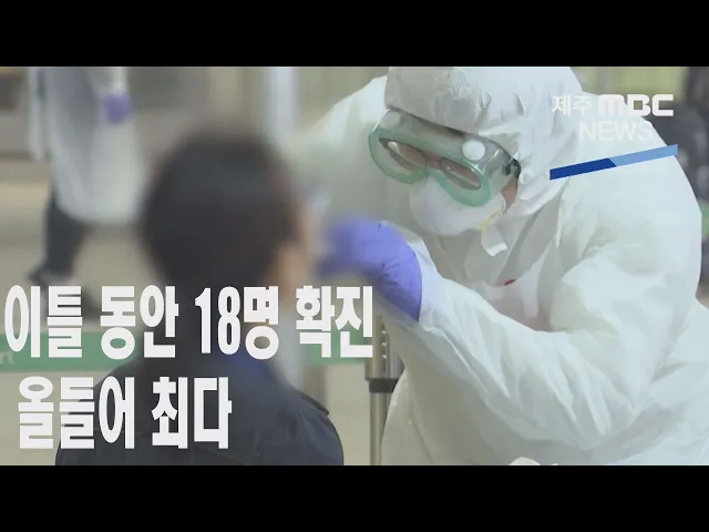 ◀ANC▶ 제주에서 어제와 오늘 이틀 동안 올들어 가장 많은 18명이 코로나19 신규 확진 판정을 받았습니다. 합숙 훈련을 하던 모 대학교 선수단 7명이집단감염됐고, 제주시내 학원 강사도 확진돼방역에 비상이 걸렸습니다. 박주연 기자입니다. ◀END▶ ◀VCR▶ 제주국제대학교 소속 레슬링 선수 A씨가 코로나19 최종 양...