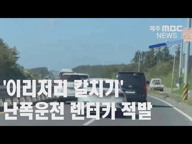 ◀ANC▶ 네, 이처럼 제주를 찾는 관광객이 늘면서, 렌터카 이용객도 늘고 있는데요. 무려 20킬로미터 가까이 곡예하듯 난폭 주행을 한 렌터카가 다른 운전자의 신고로 적발됐습니다. 시청자 제보뉴스, 박주연 기자입니다. ◀END▶ ◀VCR▶ 제주시와 서귀포시 중문을 잇는 평화로. 한 렌터카 승용차가 이리저리 차선을 ...