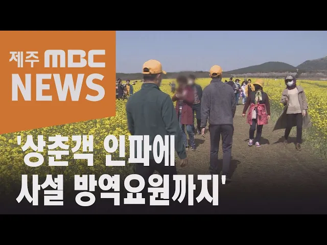 ◀ANC▶ 제주에는 유채꽃과 벚꽃이 활짝 피었습니다. 코로나19 확산을 우려해 봄꽃 축제를 취소하거나온라인으로 진행한다고 예고했는데요, 그럼에도 많은 관광객들이 몰리면서 현장에는 사설 방역업체까지 투입됐습니다. 박주연 기자입니다. ◀END▶ ◀VCR▶파란 하늘 아래 펼쳐진 들판이 온통 노랗게 물들었습니다.다...