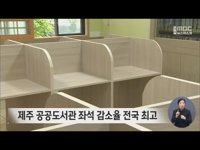 제주지역 공공도서관 좌석 감소율이 전국에서 가장 높은 것으로 나타났습니다. 문화체육관광부가 최근 공개한 공공도서관 통계조사 결과보고서에 따르면 제주지역 공공도서관의 총 좌석 수는 5천900여 석으로 1년 전보다 16.8% 감소했는데 17개 시.도 가운데 가장 많이 줄었습니다. 반면, 일주일에 문을 여는 시간은 75.1시...