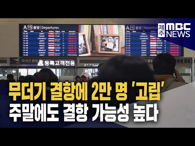 ◀ 앵 커 ▶ 한파가 찾아온 제주에는 한라산에 종일 폭설이 쏟아졌고, 해안에는 매서운 바람이 몰아쳤습니다. 항공기 300여 편이 결항하고, 배편도 대부분 끊기면서 승객 2만여 명의 발이 묶였습니다. 박주연 기자가 보도합니다. ◀ 리포트 ▶ 제주공항 활주로에 힘겹게 착륙하려던 항공기가 다시 상공으로 올라갑니다. 새벽부...