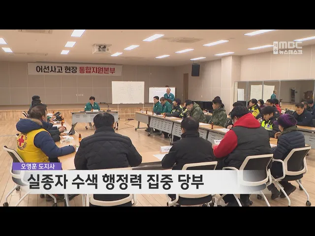 오영훈 도지사는 오늘 토끼섬 어선 좌초 사고 통합 상황실을 찾아 실종자 수색에 행정력을 집중하라고 당부했습니다. 오 지사는구좌읍사무소에 마련된 통합 상황실에서 수색 경과를 보고 받고 수색 인력과 장비 운용 현황은 물론 실종자 가족에 대한 지원 상황도 점검했습니다. 한편, 지난 1일 오전 9시 20분쯤 토끼섬 인...