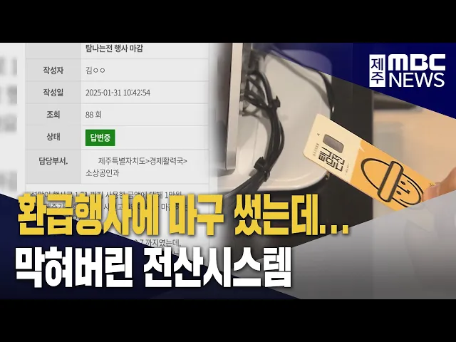 ◀ 앵 커 ▶ 제주도는 설 명절을 앞두고 지역 경제를 활성화시키겠다며 탐나는전 환급 행사를 추진했는데요. 당초 이번 주까지 신청을 받기로 했다가 예산을 다 썼다며 갑자기 환급을 안 해주기로 해 민원이 빗발치고 있습니다. 박주연 기자가 보도합니다. ◀ 리포트 ▶ 탐나는전을 자주 이용하는 김 모씨. 설 연휴 환급 행사 ...