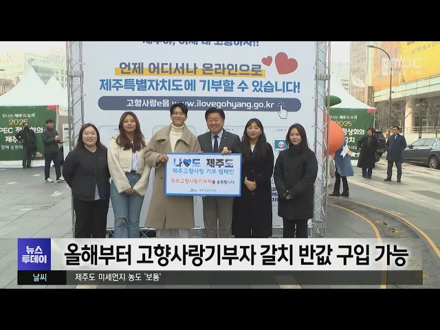 올해부터 고향사랑기부자들이 갈치를 반값에 살 수 있습니다. 제주도는 올해 고향사랑기부제 답례품으로 6개 품목을 추가해 기부자들이 답례품 몰에서 시중가의 절반 가격으로 갈치와 감귤 와인을 구매할 수 있다고 밝혔습니다. 특히, 귤과 돼지고기는 증량된 특별 상품으로 받을 수 있는데, 기부자는 답례품 포인트로 ...