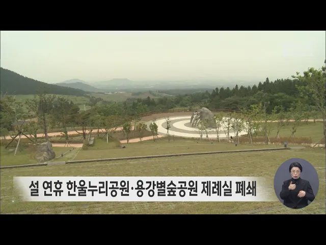 설 연휴 기간에 한울누리공원과 용강별숲공원 내 제례실이 폐쇄됩니다. 제주시는 설을 맞아 추모객 등 방문자가 일시적으로 집중될 것으로 예상됨에 따라 오는 28일부터 사흘 동안 한울누리공원과 용강별숲공원 내 제례실을 폐쇄한다고 밝혔습니다. 또, 실내 음식물 반입과 섭취를 금지하고 진입 구간에 교통정리와 주차...