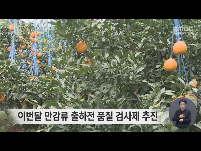 비상품 감귤의 유통을 차단하기 위해 만감류 출하 전에 품질 검사가 추진됩니다. 제주시는 올해 말까지 한라봉과 천혜향 등을 수확하거나 출하하려는 농가와 유통인을 대상으로 이번 한달 동안 만감류 출하전 품질 검사제를 적용한다고 밝혔습니다. 검사 기준은 당도 11.5브릭스 이상, 산 함량 1.1% 이하로 수확 예정일 ...