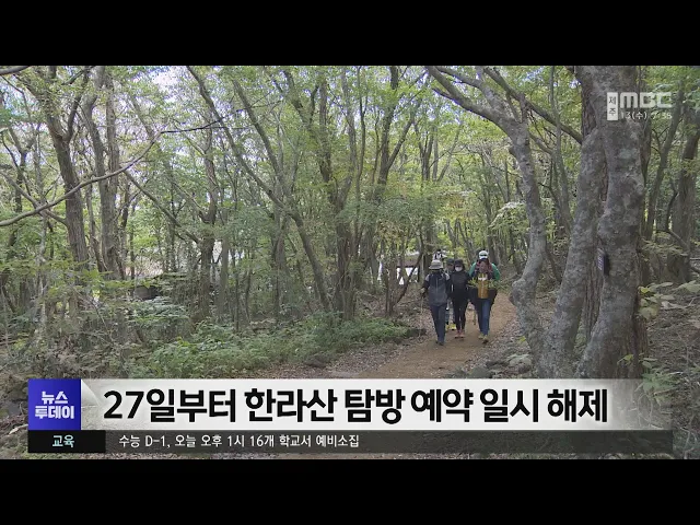 가을 단풍 구경과 초겨울 산행으로예약 대란이 빚어진 한라산 탐방예약이 일시적으로 해제됩니다.제주도는 오는 27일부터 한달 동안한라산 성판악과 관음사 탐방로에 적용된 예약제를 전격 해제하기로 했습니다.이 기간 지정 탐방로에서사전 예약 없이 등반할 수 있는데,탐방객들이 대거 몰릴 것을 대비해임시 버스를 투입...