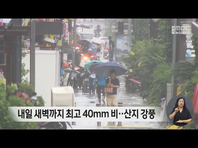 내일 새벽까지 최고 40mm 비...산지 강풍
