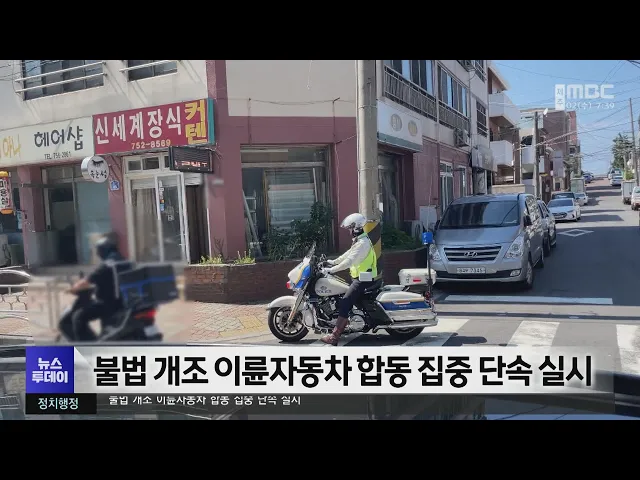 이륜자동차 합동 집중 단속이실시됩니다. 서귀포시는이륜자동차의 굉음과 불법 개조로 인한소음 민원이 증가함에 따라이번달 한달 동안 경찰 등 유관기관과 함께합동단속을 벌인다고 밝혔습니다. 단속 주요 내용은배기소음 기준 위반과 불법 개조, 안전모 미착용 등으로불법 행위가 적발되면범칙금과 과태료를 부과할 방침...