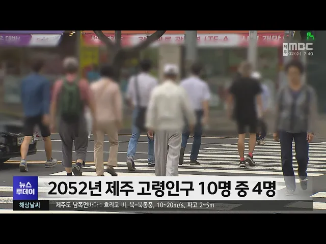 2052년에 고령인구 비중이10명 중 4명으로 증가할 것으로 전망됐습니다. 통계청은제주지역 65세 이상 고령 인구 비중이오는 2038년에는 31.5%,2052년에는 40.9%까지비중이 높아질 것이라고 전망했습니다. 한편, 올해 도내 고령 인구 비중은 18.1%로전국 평균 19.2%보다 소폭 낮았고,17개 시.도 가운데 11번째로 기록됐습니...