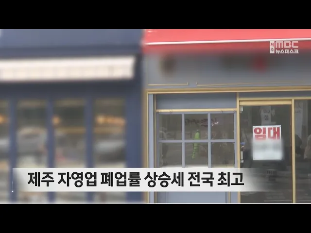 제주지역 자영업 폐업률 상승세가 전국에서 가장 컸던 것으로 나타났습니다. 국세청에 따르면 지난해 제주지역 폐업률은 10.2%로 전년 보다 1.6%포인트 증가해 17개 시.도 가운데 폐업률이 가장 많이 상승했습니다. 한편, 지난해 폐업률이 가장 높은 지역은 인천으로 12.1%를 기록했고 광주와 울산이 각각 11.8%와 11.7%...