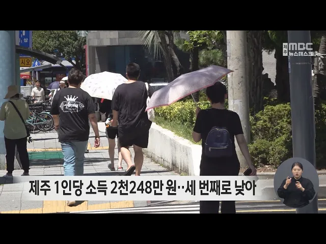 제주지역의 1인당 개인소득이 전국 17개 시.도 가운데 최하위 수준인 것으로 나타났습니다. 통계청에 따르면 지난 2022년 기준 제주지역의 1인당 개인 소득은 2천248만 원으로 전국 17개 시.도 가운데 세 번째로 적었습니다. 전국 평균은 2천497만 원으로 제주보다 249만 원 많았습니다. 가장 많은 곳은 2천819만 원인 서울...