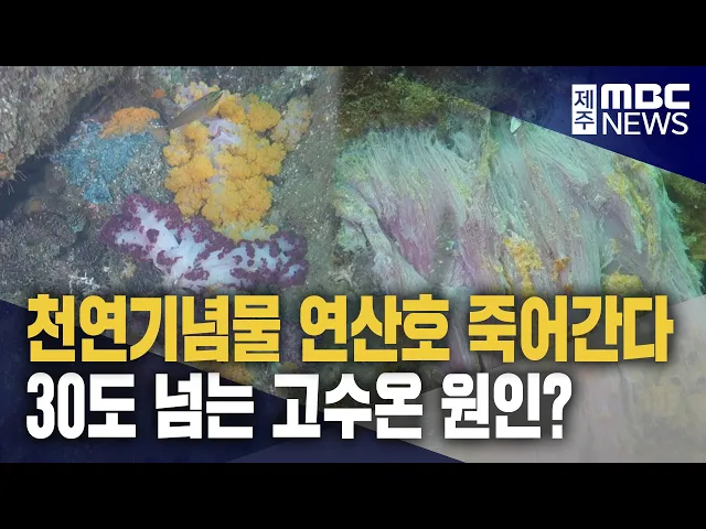 ◀ 앵 커 ▶ 제주 서귀포 앞바다에 서식하는 연산호 군락은 생태계에서 갖는 중요성과 희귀성 때문에 천연기념물 442호로 지정되어있는데요. 최근 이 연산호들이 기후변화로 생존 위기를 맞고 있습니다. 박주연 기자가 보도합니다. ◀ 리포트 ▶ 마치 잘 익은 밤송이처럼 생긴 붉은빛의 밤수지맨드라미. 멸종 위기 야생생물로 ...
