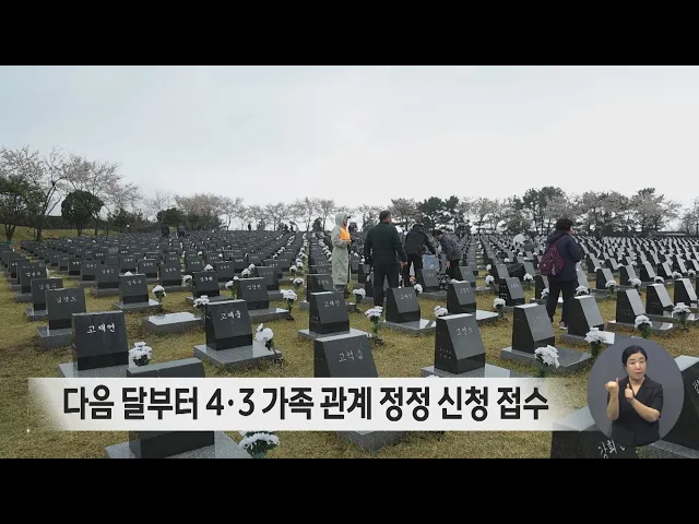 4.3사건으로 뒤틀린 가족관계를 바로 잡기 위한 작업이 본격적으로 이뤄집니다. 제주4.3사건진상규명과 희생자 명예회복 실무위원회는 지난 7월 관련법이 개정됨에 따라 다음 달 1일부터 2년 동안 희생자의 사실상 배우자와 양자 정정을 위한 신청을 받습니다. 주소지가 있는 제주도나 행정시, 주민센터에 방문이나 우편으...