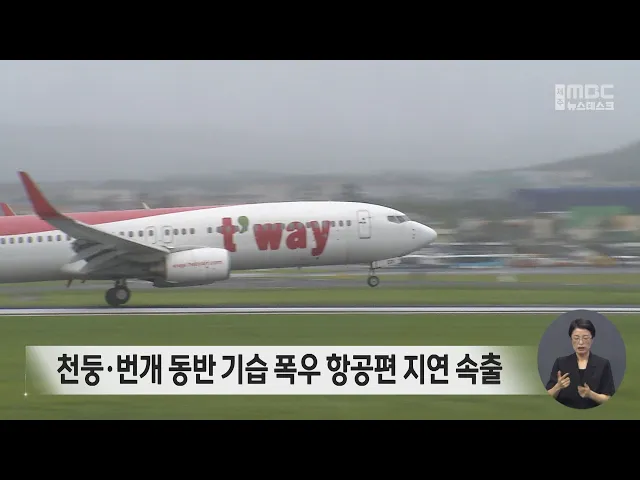 천둥과 번개를 동반한 기습 폭우가 쏟아지면서 제주국제공항의 항공편 지연 운항이 속출했습니다. 한국공항공사 제주공항에 따르면 천둥과 번개를 동반한 폭우로 인해 제주공항을 오가는 항공편 496편 가운데 200 여 편이 지연 운항했습니다. 특히, 오후 1시 30분쯤 부산에서 출발한 제주항공 항공기과 오후 1시 40분쯤 ...