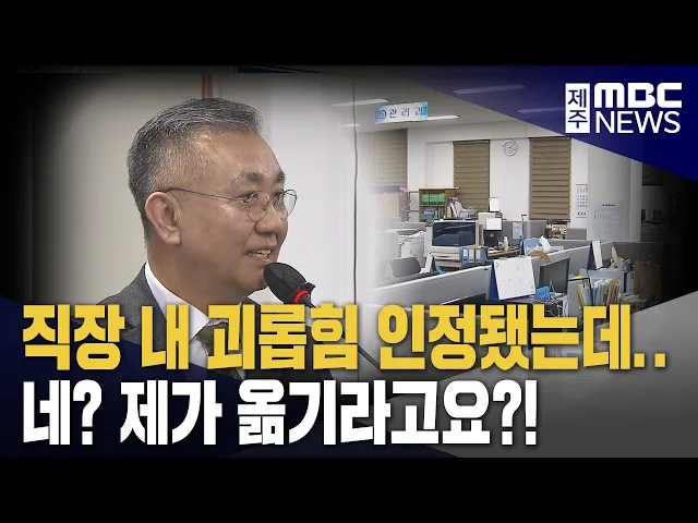 ◀ 앵 커 ▶ 제주시체육회의 직장내 괴롭힘이최근 고용노동부에서 인정됐는데요. 직장 내 괴롭힘이 발생하면 가해자를 피해자로부터 분리해야 하는데, 오히려 피해자들을 외곽지역으로 발령 내는 등 2차 피해가 발생하고 있다는 주장이 제기됐습니다.박주연 기자가 취재했습니다.◀ 리포트 ▶지난해 12월,제주시체육회 직원 전...